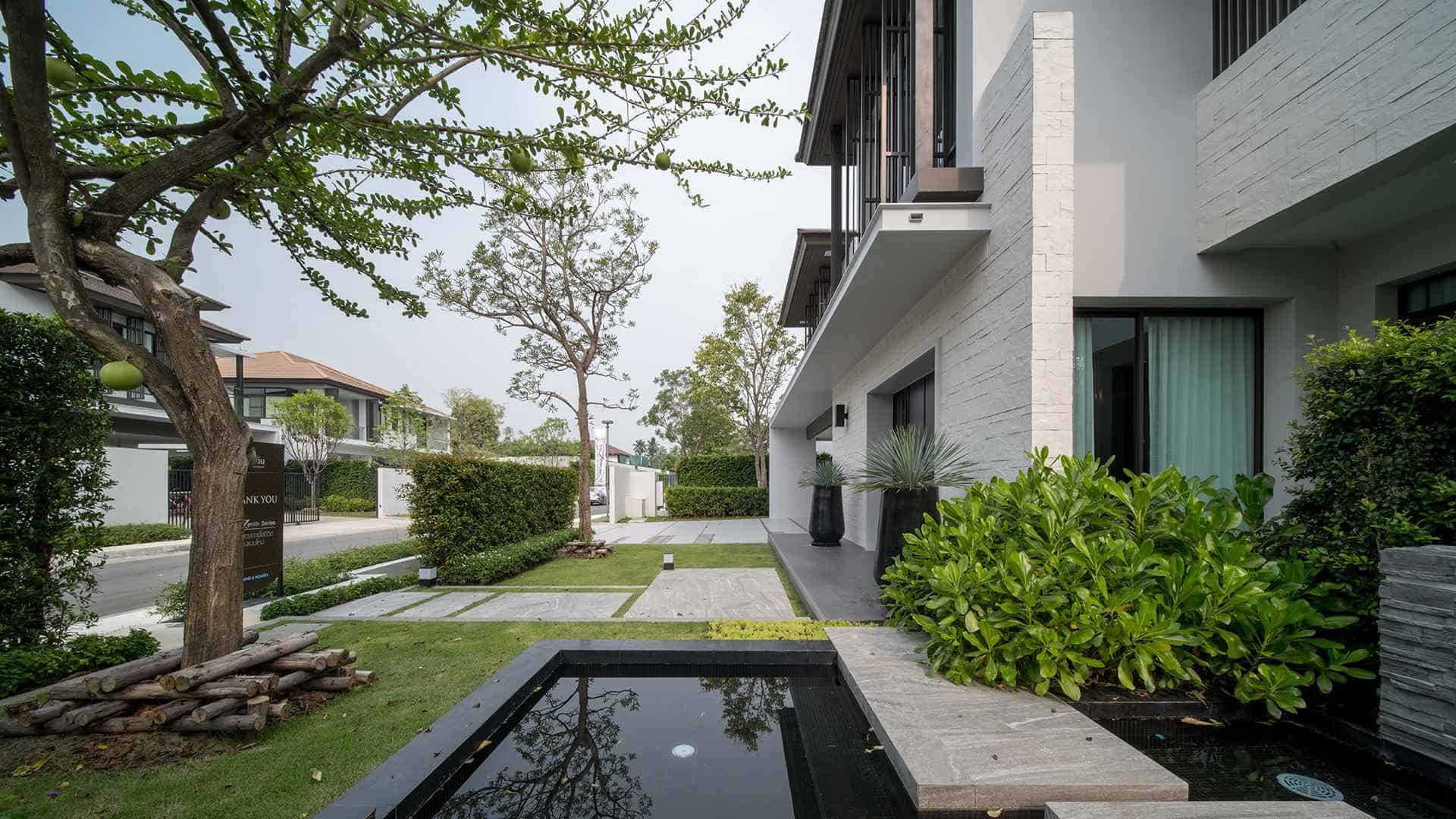 การออกแบบบ้านที่มีพื้นที่สวนรอบบ้าน เพื่อให้ได้ใกล้ชิดกับธรรมชาติมากที่สุด พร้อมพื้นที่สีเขียวที่โอบล้อมรอบทั่วทั้งโครงการกับสังคมที่แสนอบอุ่น และอุดมความสุข