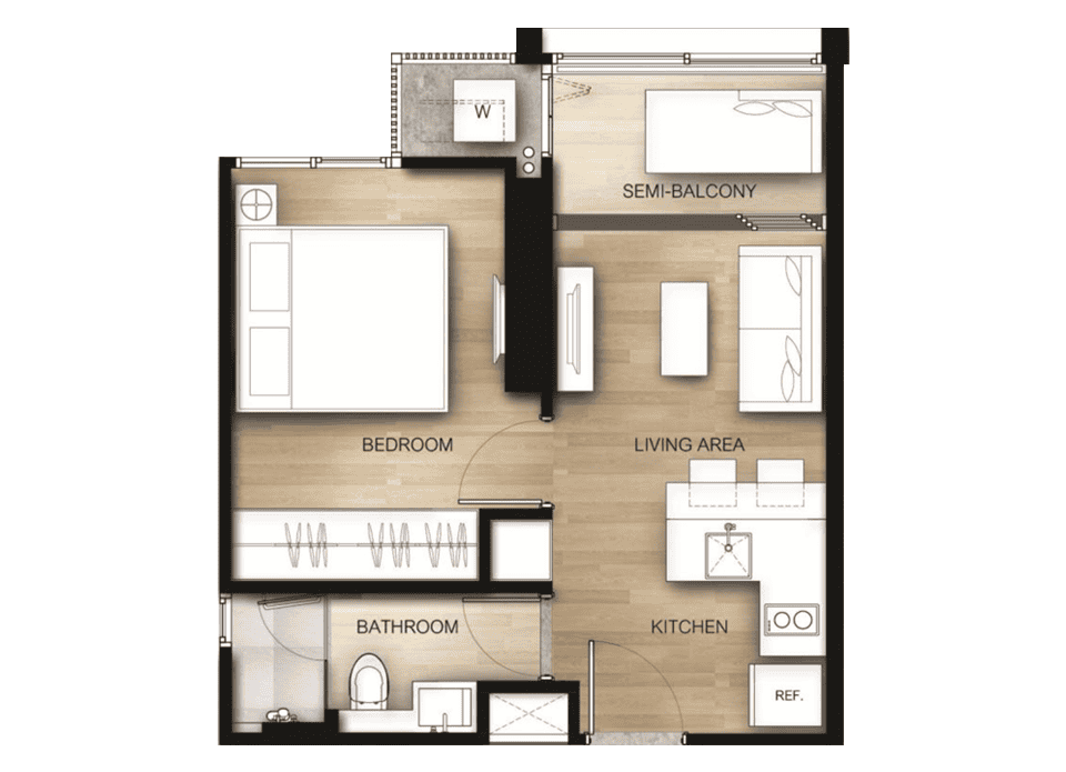 - ภาพแสดงการแบ่งพื้นที่ใช้สอยเท่านั้น ไม่รวมการตกแต่งภายใน